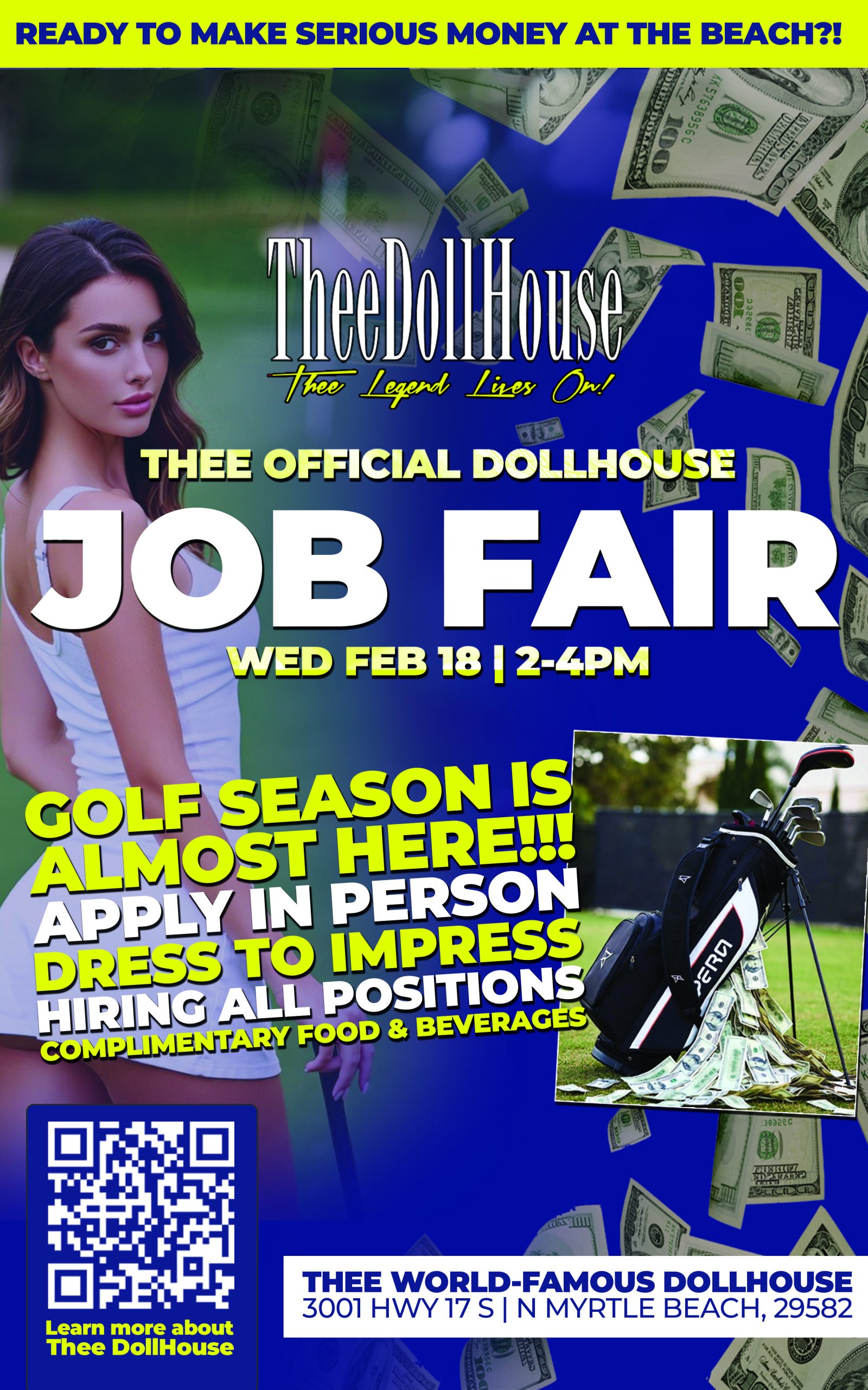Thee World-Famous Dollhouse is hosting an Official Dollhouse Job Fair, and we’re hiring for ALL positions just in time for golf season and our busiest months of the year.